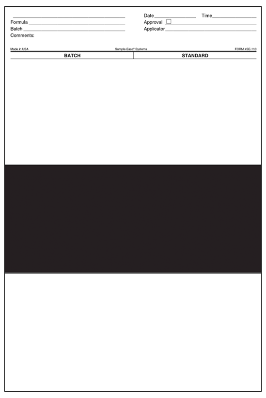 Also used for side by side comparison of two different products at a specific thickness to show hiding. Used for competitive comparison.